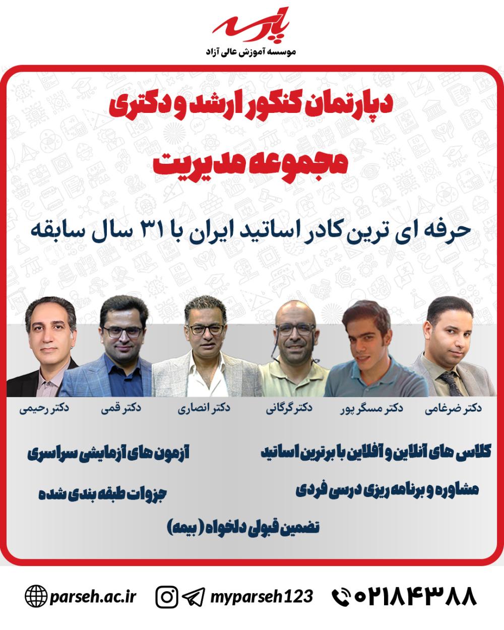 برترین کادر اساتید در کلاس های کنکور کارشناسی ارشد و دکتری رشته مدیریت با 31 سال سابقه درخشان در پارسه