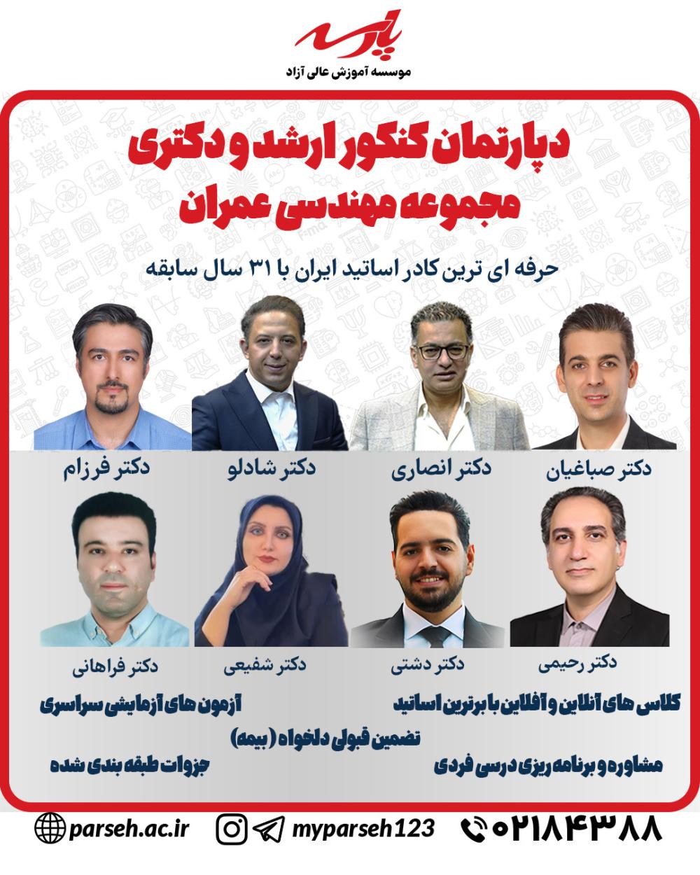 برترین کادر اساتید در کلاس های کنکور کارشناسی ارشد و دکتری رشته عمران با 31 سال سابقه درخشان در پارسه